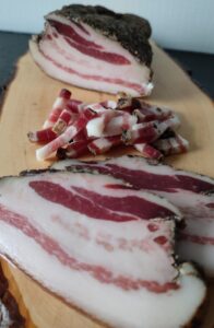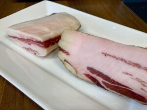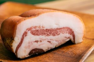 - グアンチャーレは豚の頬肉を使ったイタリアの伝統食材で、カルボナーラなどに必須の存在